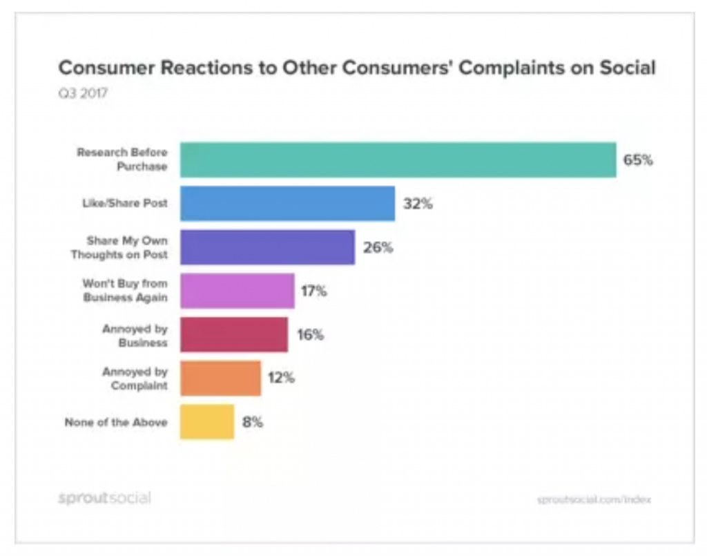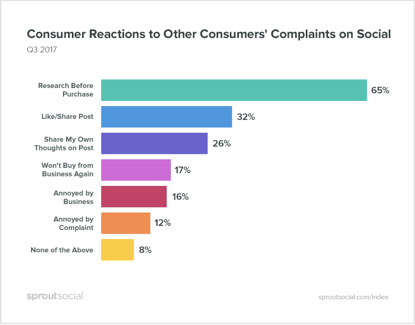 看看这个来自Sprout Social 2017年第三季度的报告吧,该报告是关于在社交媒体上看到其他用户发布“抱怨” 的反应。