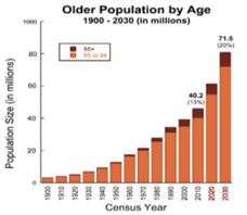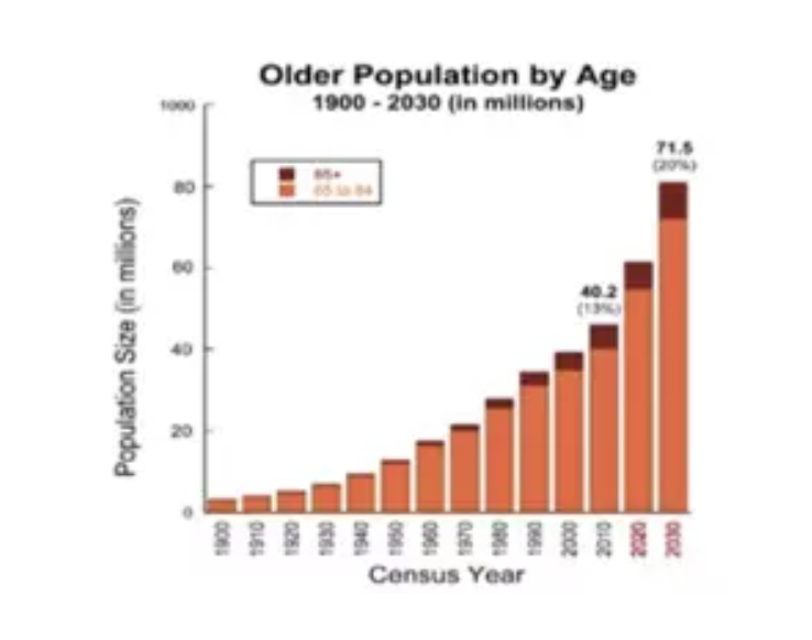随着老龄人口(65岁以上)迅速增长,将逐渐达到美国总人口的20%(至2030年)。