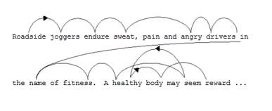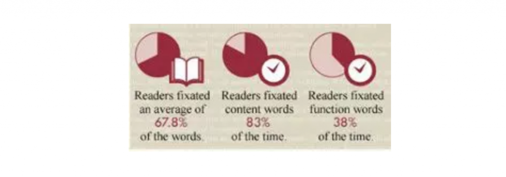 这代表了高读写能力读者通常的阅读模式。你注意到他们是如何完全跳过短词的吗?