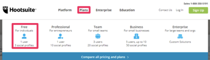 将鼠标停留在“计划(plans)”一词上,以查看下拉菜单,并点击高亮区域创建一个免费帐户。