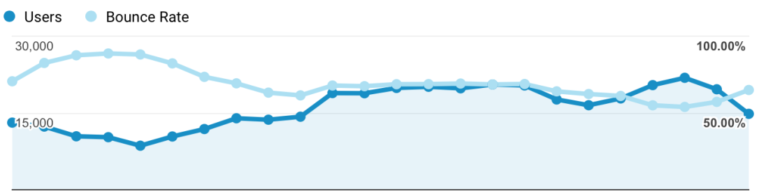 常见的虚假流量每次会话只访问一个网页,也就是说跳出率是100%,会话时长是0,浏览页数是1,因此它们会明显影响整体粘性数据。