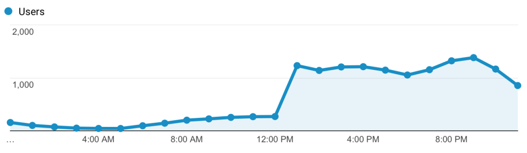 除了以上两种最简单的情况之外,有时异常流量并不那么明显。例如我们见过来源是 baidu / organic 的奇怪流量,它们只访问特定的三个页面,并且只在中午12点以后访问。这样的流量是怎么被发现的呢?