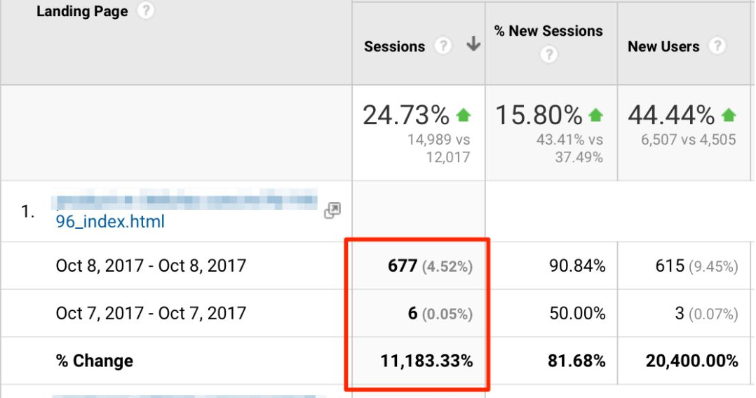 首先我们在“受众群体-技术-网络-主机名”中看到某个域名的会话数明显上涨,然后到“行为-网站内容-所有页面-内容分组”中,查看到底是哪类页面访问量上升了(注意,内容分组需要额外设置才会有),找到之后再看这类页面之下是哪些具体页面在上涨,最后再用高级细分聚焦这几个页面,于是发现了以上的问题。