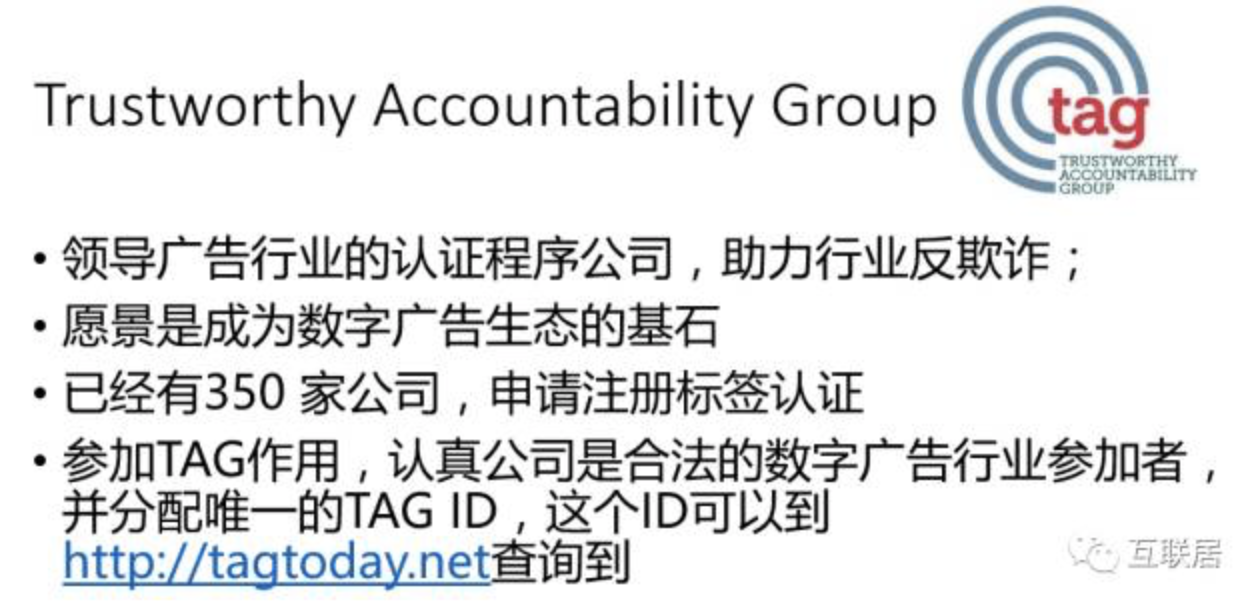 TAGID是第4项,属于可选项,用于广告交易平台的认证。这个组织是这几年成立的认证标准组织,用于数字营销的认证。所谓认证,也就是广告交易平台,提交一些资质证明,TAG组织审核一下,然后分配一个认证码。