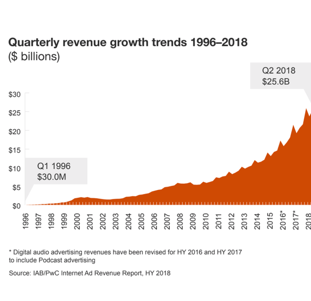 与此同时,视频广告营收增长35%至70亿美元,其中移动视频占到60%。数字音频广告营收增长31%至9.35亿美元,社交媒体广告营收增长38%至131亿美元。