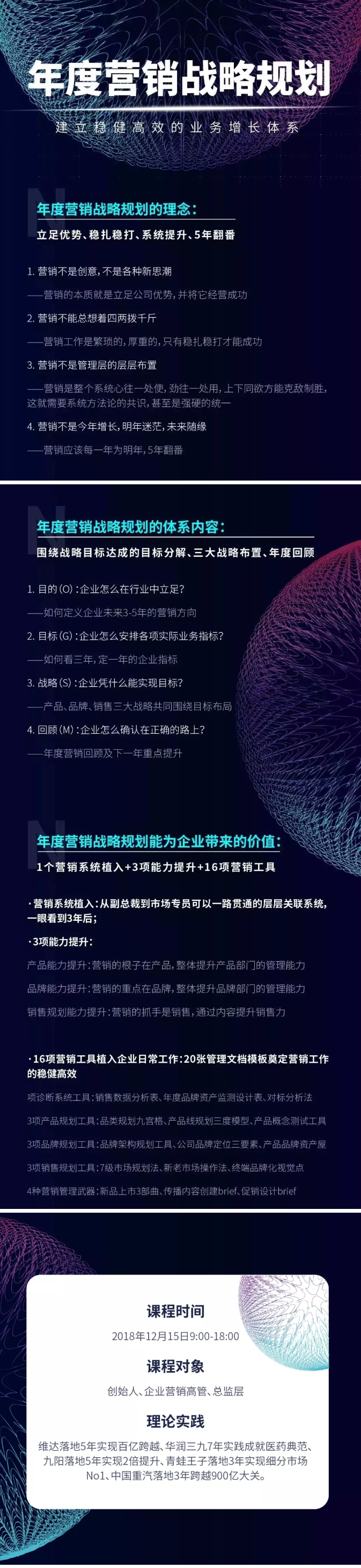 次日(12月15日)举办的“营销战略规划工作坊”将持续深入,带领学员实操落地。以讲师授课、小组讨论与实战演练的形式,帮助企业把握2019年度营销工作方向,围绕目标进行营销战略布局,建立2019年稳健高效的业务增长体系。