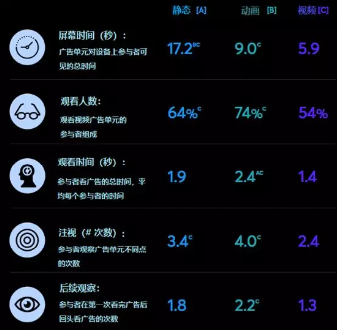 对于营销人员而言,可见度是一个非常重要的度量指标;互动广告局(IAB)对于一个曝光的构成有着非常详细的指导方针,但这并不能说明整体情况。虽然可见度让广告客户知道广告在屏幕上展现了,但他们不能确定广告是否吸引了消费者的眼球。更重要的是,可见度并不能决定广告是否真正引起消费者的共鸣。