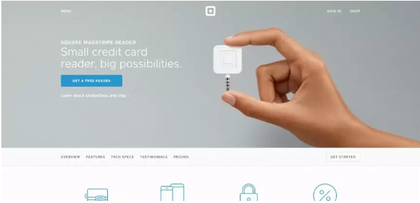 产品营销难点是展示为什么Square更容易替代一般的收银机,其产品页面以一种可视化的吸引受众注意力的方式列举了所有原因。