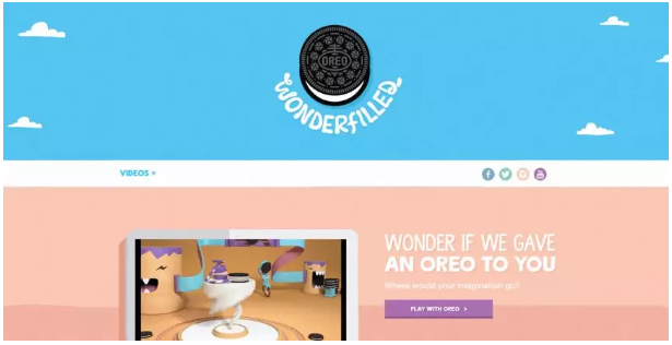 “当你和奥利奥互动时,你的想象力将变得更加丰富”,这是对吃“它们”的“最佳”方式的致敬。该页面采用创新大胆的营销方式,宣传奥利奥是一种不普通的零食。
