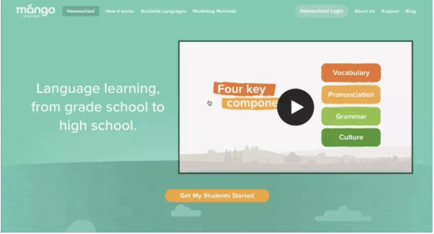 芒果外语学习为图书馆,学校,企业,政府机构和个人创造了“可爱”的语言学习体验。其主页为这些购买者角色阐明了引导性指示 – 从公共图书馆到政府办公室,再到那些在家上学的孩子。每一个引导性指示都会引向一个不同的产品页面,这个页面色彩鲜艳,书写清晰并且内容全面。看看下面的家庭教师的例子。与网站的其他部分一样,它散发着芒果外语学习友好,平易近人且乐于助人的品牌个性。视频不可能更令人愉快。当你滚动页面,会看到明确的价值主张,这些价值主张使用对品牌而言真实的有趣语言。页面的一切都在表达着“简单易用”,“有趣”和“有效”。芒果外语的产品页面