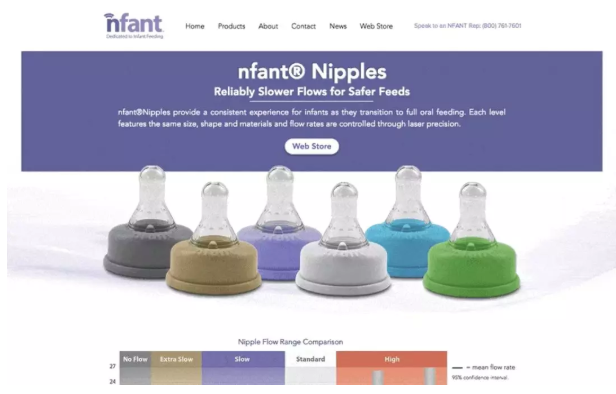 Nfant®是一种婴儿护理产品,帮助婴儿实现从母乳喂养到奶瓶自主进食的重要转变 – 正如该公司的Nfant®Nipple产品页面所显示的那样。这个小企业与其他护理和育儿服务企业的区别在于它使用数据来吸引顾客。下面的产品页面讲述了几种类型的瓶顶形的奶嘴,婴儿吸吮时,每种都为婴儿提供不同流量水平的流量。然而,正如每个产品的条件所涉及的那样,产品页面提供了颜色,视频演示,甚至提供哺乳妈妈可以参考的每种产品流量范围的图表。哺乳妈妈们总是在学习获取如何保持孩子健康发展的知识。考虑到这一点, Nfant的详细但易于理解的产品页面非常了解买家的需求。nfant-nipple-产品页面