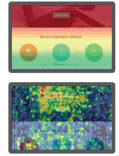 - 热力图工具:这些工具让你可以更深入的了解页面各个独立部分的互动形式,例如购买页面,以便了解用户在哪个部分徘徊、上下滚动页面以及点击最多。