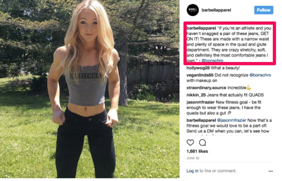 这是Barbell Apparel在社交网站Instagram上展示的牛仔裤宣传广告。