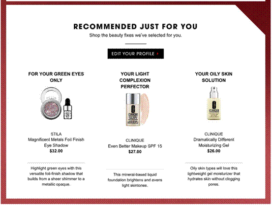 当营销人员谈论个性化营销时,他们通常在指某些常规策略,如:掌握目标人群的电子邮箱,发送电子邮件提醒客户清空购物车,以及根据消费者历史购买行为个性化推荐产品。