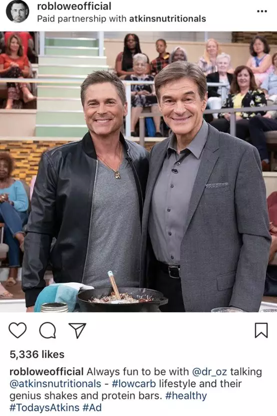 如果你是随意浏览,你可能看到广告并心想“哦,Rob Lowe是Dr. Oz的朋友”。但是他手柄下面的定位标签和标题里的#,让你意识到这是个广告。