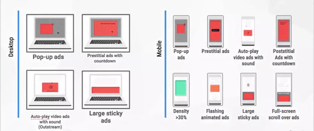 - 小心用户打扰。干扰型广告通常被认为是促使全球高频使用广告拦截工具的原因。在2月,Google开始为Chrome用户过滤一些最让人反感的广告。
