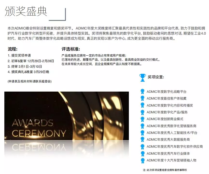 成功获奖的企业/个人将在ADMIC汽车数字化&营销创新峰会上予以现场公布并颁奖。同时,iDigitalChina下属媒体平台及60+媒体合作伙伴也将同步进行获奖公示。
