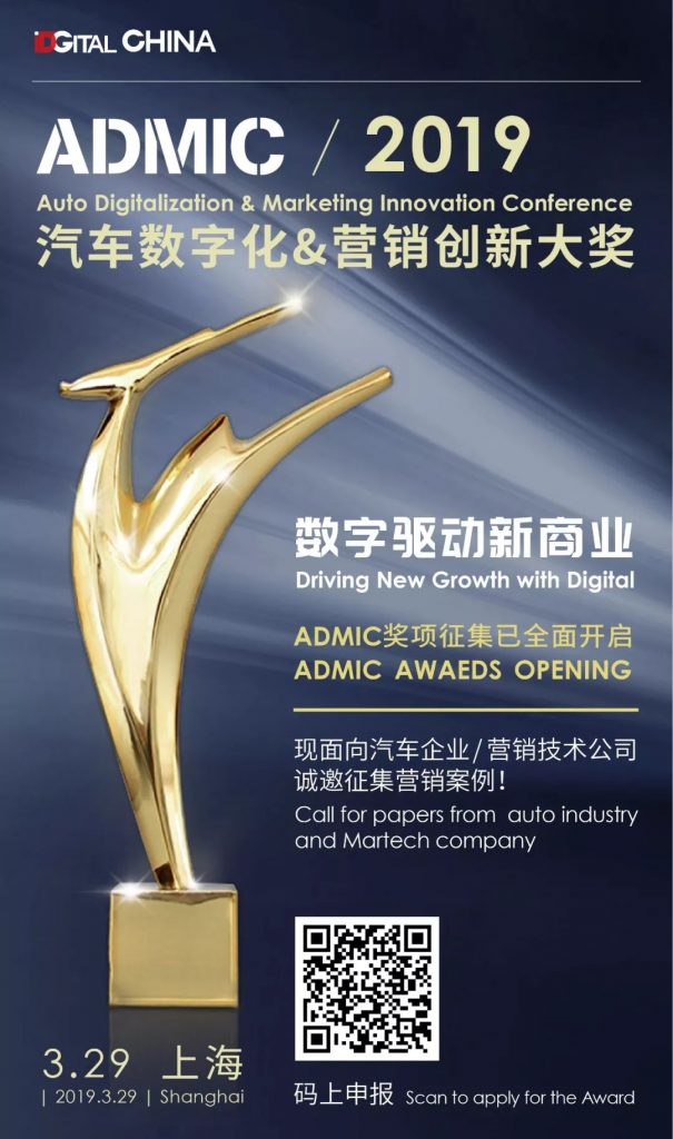 ADMIC汽车数字化&营销创新峰会暨颁奖典礼将于3月29日在中国上海盛大召开,同期进行的ADMIC汽车数字化&营销创新大奖现全面征集优秀项目案例 ,立即报奖即有机会领取会议限量版VIP参会礼包~