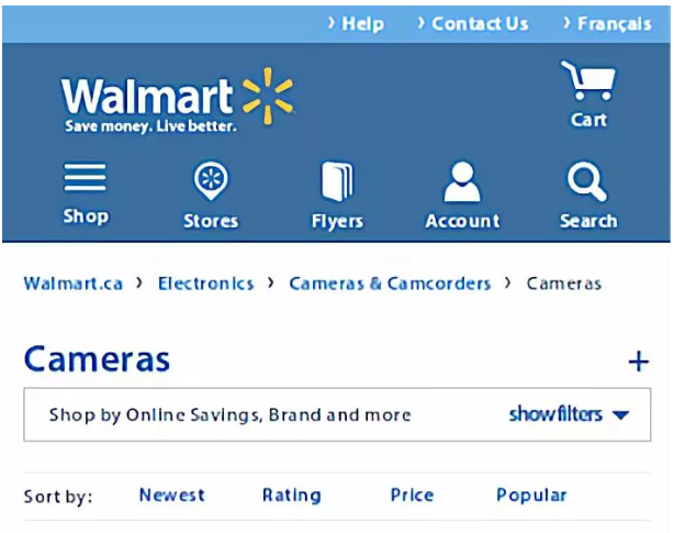 通过更新官网网站设计,沃尔玛超市加拿大电商网站(Walmart.ca)成功将转化率提高了20%。