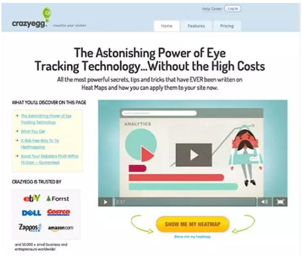 通过在官网添加对产品的视频介绍后,CrazyEgg公司的转化率提高了64%,月收入提升21,000美金。