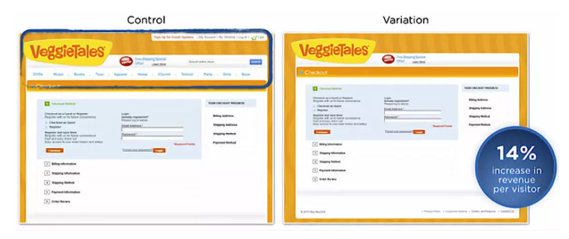 例如,他们其中的一个A/B测试是探查删除导航栏对转化的影响。经调研,删除导航栏证明后,平均每个访客会该公司带来额外14%的收入。