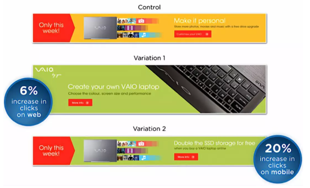 最终测试结果在不同浏览设备中,有不同表现。PC端设备中,索尼网站点击率提升6%,移动端设备上点击率提高了20%。