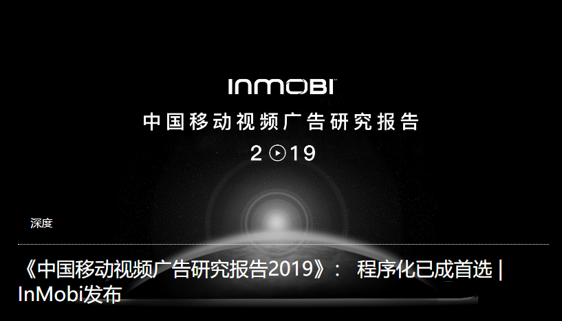 近日,InMobi发布了《中国移动视频广告研究报告2019》,就APP内移动视频广告在中国的增长情况、程序化发展状况、广告主投入程度以及未来发展等问题,进行了调查研究。