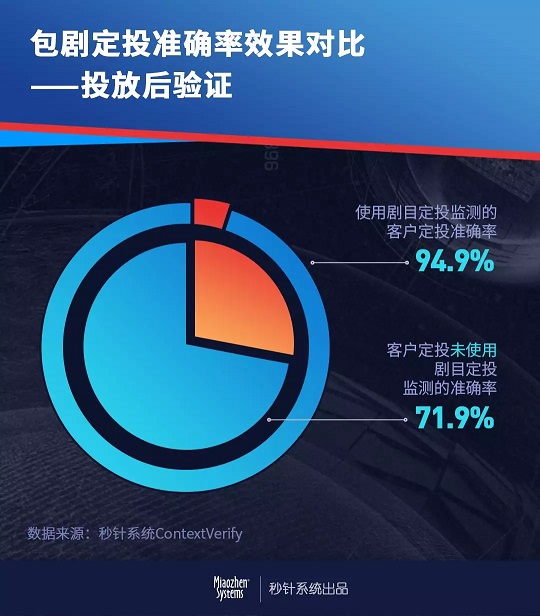 使用秒针系统剧目定投监测工具ContextVerify后,客户剧目定投的平均准确率高达94.9%,高于未使用客户71.9%的平均准确率。