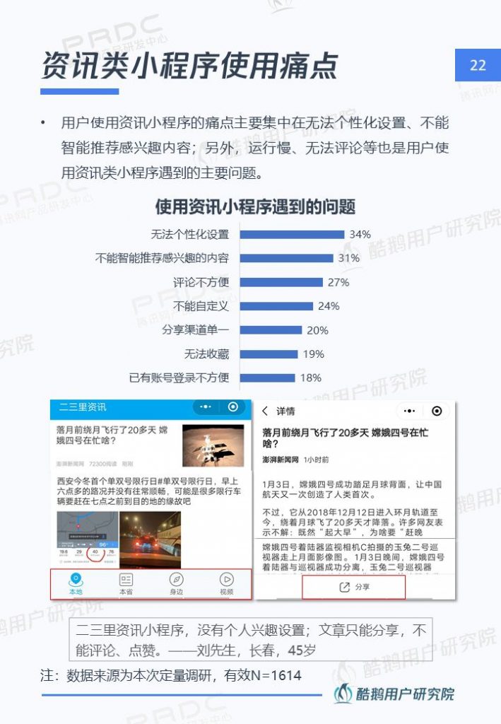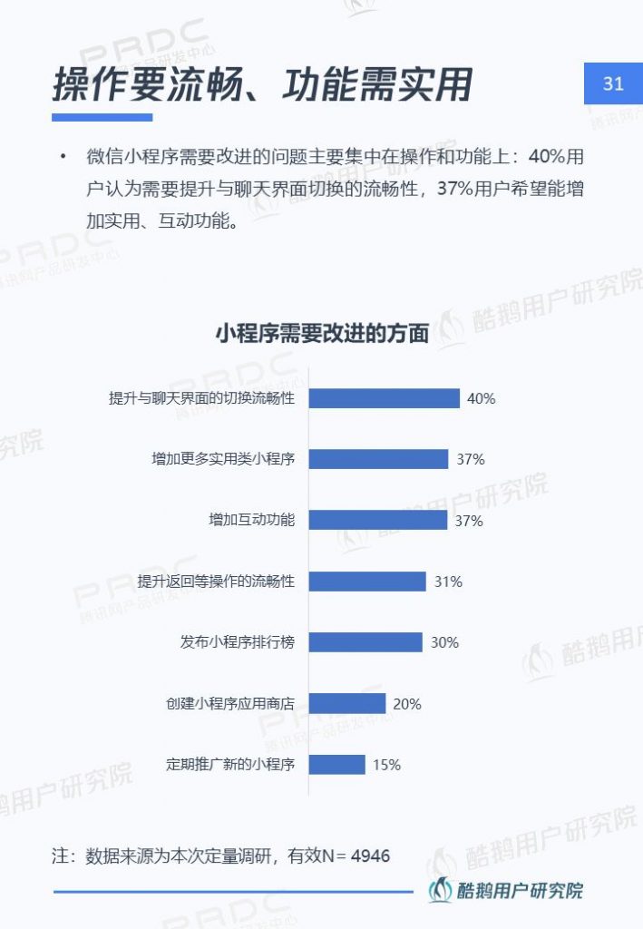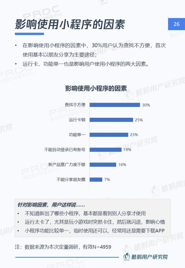 2、查找不便、运行卡、功能单一是小程序存在的主要问题