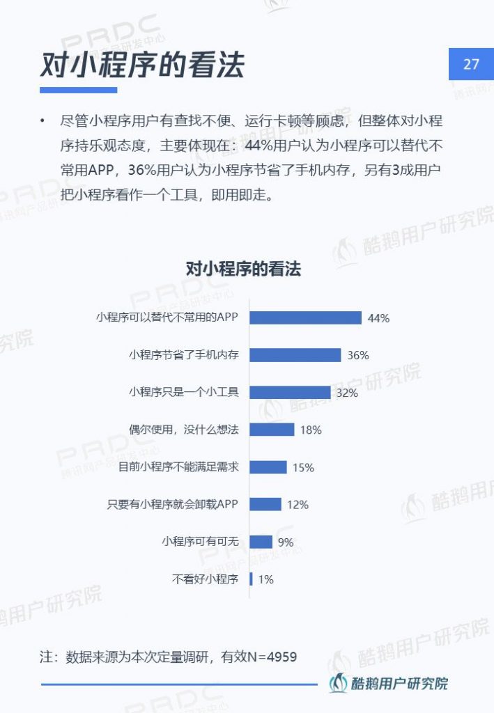 1、微信小程序用户规模大,但用户习惯并未完全养成