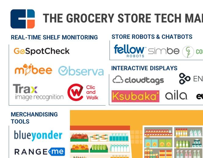 对于购物者而言,杂货店里最显著的进步可能就算是自助结帐机了。与过去几十年在其他行业看到的进步相比,这种“技术”的进步似乎是一个小飞跃,自助结帐机的出现令人感到非常便捷。然而整个杂货店行业其实应该有个彻头彻尾的变化。实际上有相当多的初创公司想要重新设计我们购买食品杂货的方式,并将超市带入未来,就像CB Insights的明智之举一样: