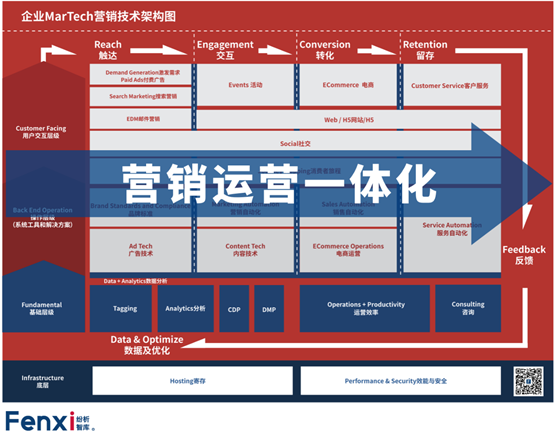 在纷析研究院所做的“企业MarTech营销技术架构图”中所示,DMP/CDP即是闭环的发起者,也是结束者。DMP/CDP如同企业市场经营活动的大脑,其任务是驱动外部资源和工具的协作与落地。