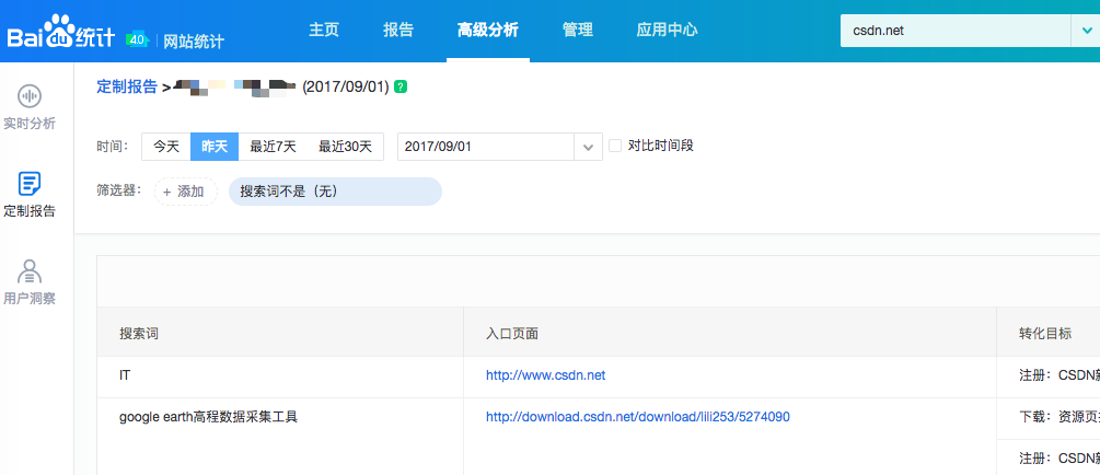 搜索引擎来路关键词的挖掘:百度统计的高级分析报告导出获取来源关键词