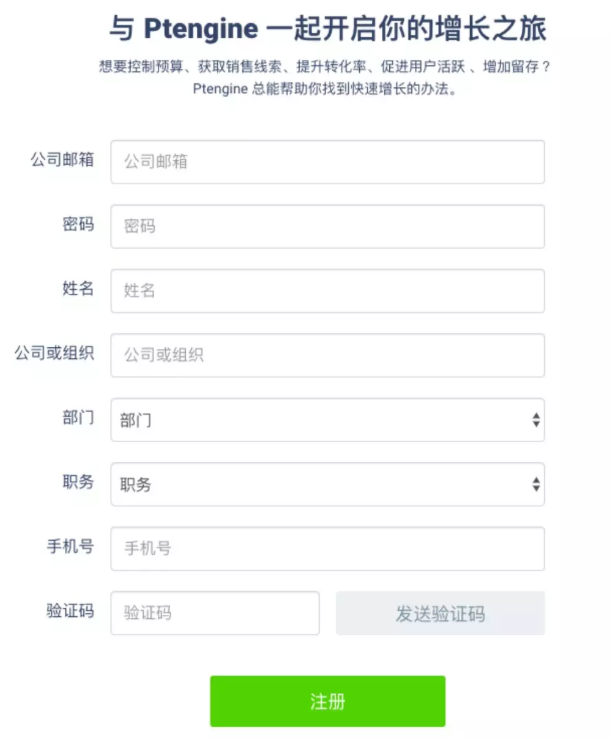 Ptengine 是企服 SaaS ,注册表单一般来说都比较复杂(销售要求的,我也很无奈…),就长这个样儿