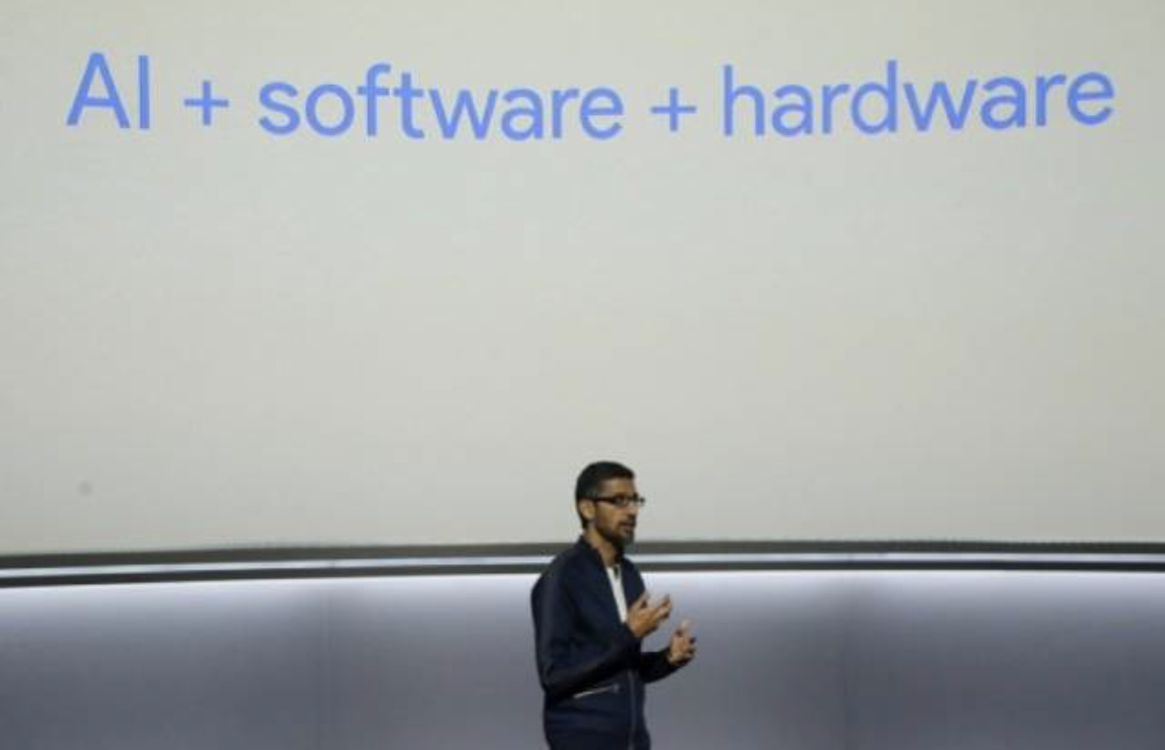 图:在本月初的Pixel2发布会上,谷歌首席执行官桑达尔·皮查伊(SundarPichai)谈到了将人工智能与软件和硬件相结合的愿景