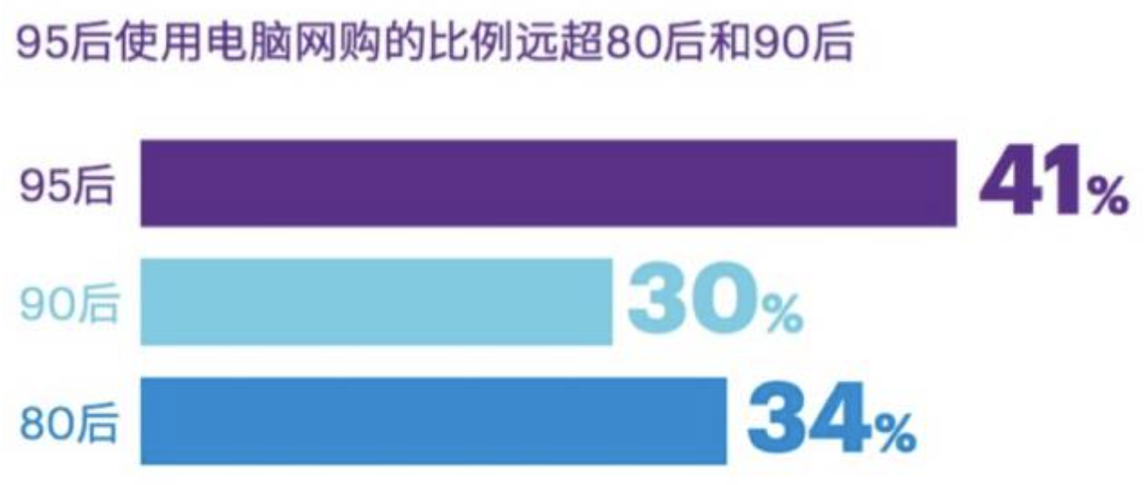 依赖网购的95后比例高于80后和90后,特别是服装类。
