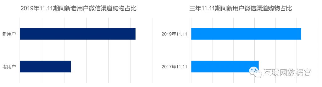 中国经济信息社与京东大数据研究院日前联合发布的《2019社交电商发展趋势报告》显示,从2017年到2019年,微信购物端下单用户数实现持续增长,其中2018年同比增幅达到42%。从三年11.11大促新用户在各渠道购物用户数占比变化来看,微信渠道购物新用户占比明显提升,2019年11.11期间占比较2017年11.11提升10%。