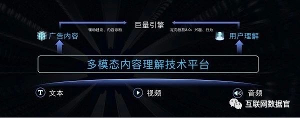 3.0阶段巨量引擎更在意通过智能技术实现深度转化效果。其打造的多模态内容理解技术平台,可以通过建设用户画像,解决给谁看的问题;通过智能技术对广告内容深入理解,解决看什么的问题,最终实现广告的精准化投放,从而提升广告的深度转化。