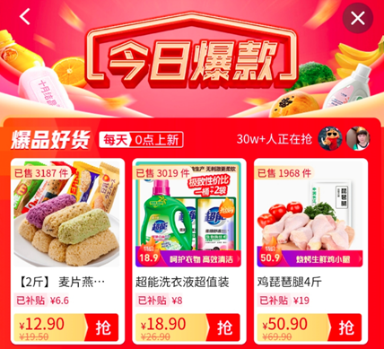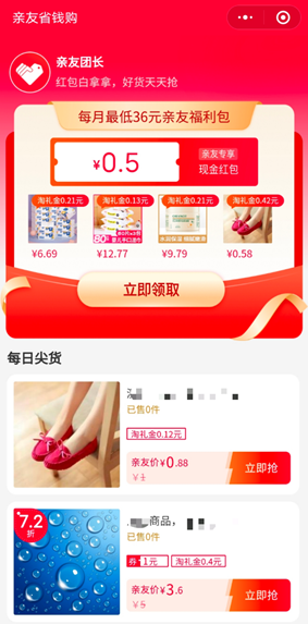 据悉,小鹅拼拼App首页采用了和拼多多相似的设计,上方设有热门的商品栏,包括美丽颜究社、吃货超市等,中部为新手福利,通过低价优惠加速对新用户的获取,下方则为系统推荐商品。