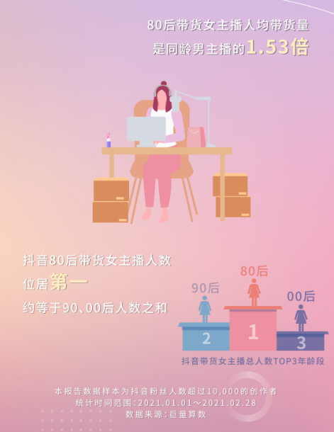 - 巨量引擎发布女性创作者画像:一线女主播人均带货订单数量为男性2倍
